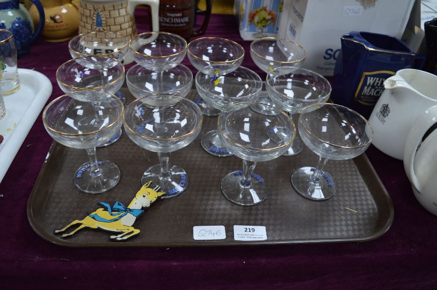 Twelve Vintage Babycham Glasses and a Vintage Advertising Bambi