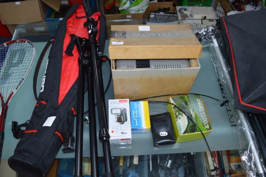 Vintage Movielux Projector with Accessories Including Benbo Tripod in Case