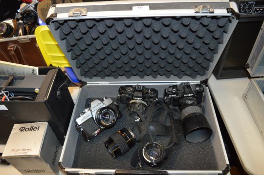 Aluminium Hard Case Containing Three Minolta Cameras