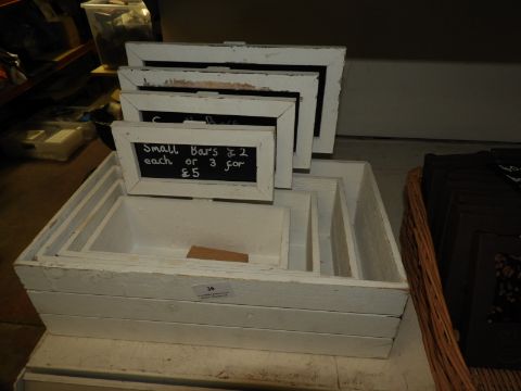 *Four Graduated Wooden Storage Boxes with Chalkboard Backs