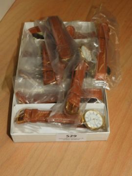 *Box Containing 10 Wristwatches with Roman Numeral Dial and Faux Leather Straps