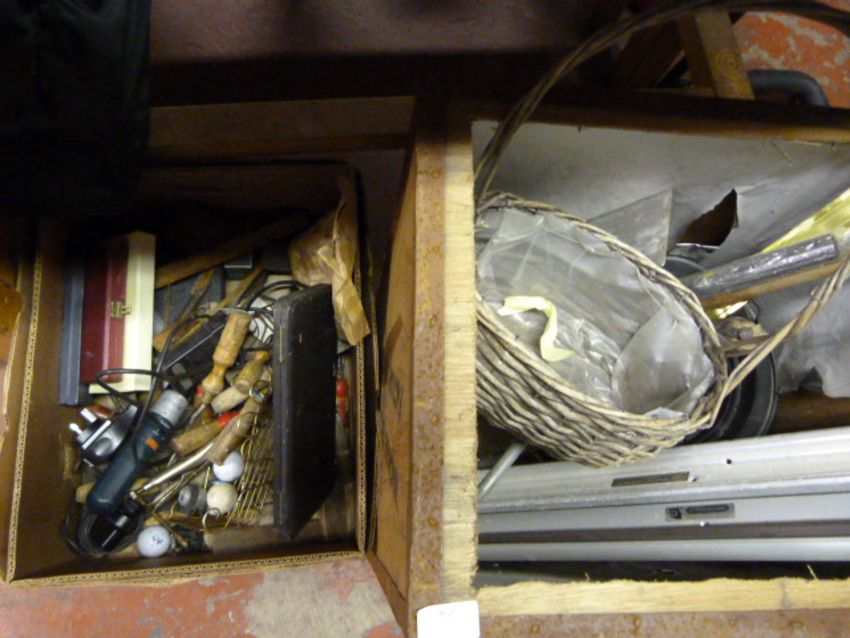 Two Boxes of Flower Pots and Miscellaneous Tools