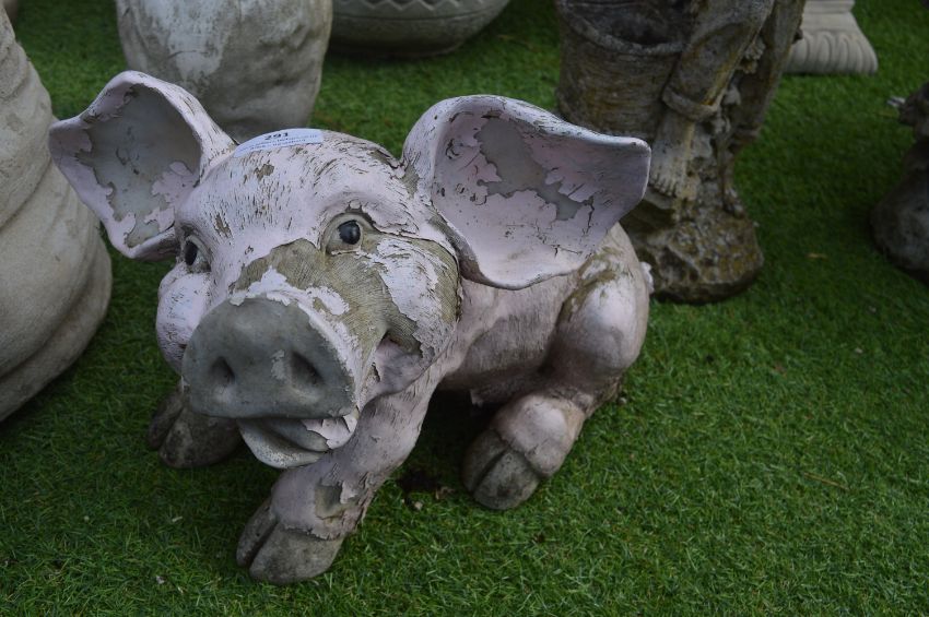 Painted Garden Statue if a Pig