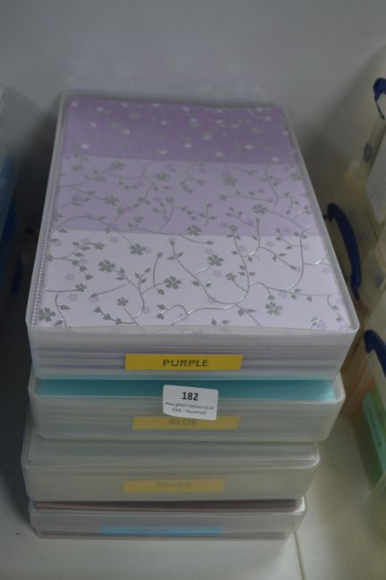 Four A4 Storage Boxes Containing Cardstock (Purple, Blue, Silver, and Brown)