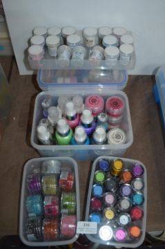 Five Small Storage Boxes of Embossing Powders, Mica Sprays, etc.