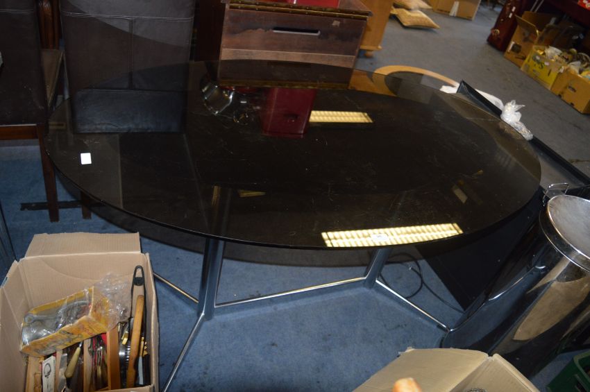 Smoked Glass Oval Dining Table on Chrome Legs