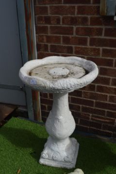 White Painted Birdbath