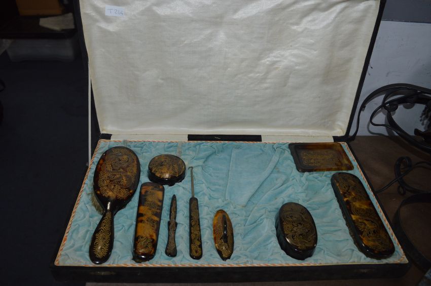 Imitation Tortoise Shell Boxed Dressing Set (Some Missing Items)