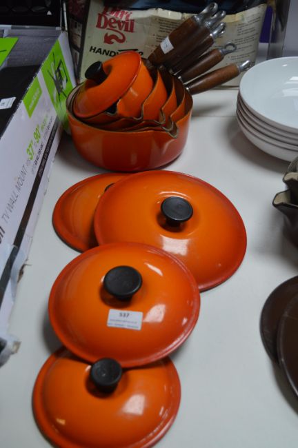 Set of Five Le Creuset Cast Iron Enameled Sauce Pans (Burnt Orange)