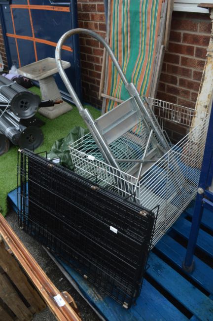 Black Dog Cage, One Other Cage and a Pair of Step Stools