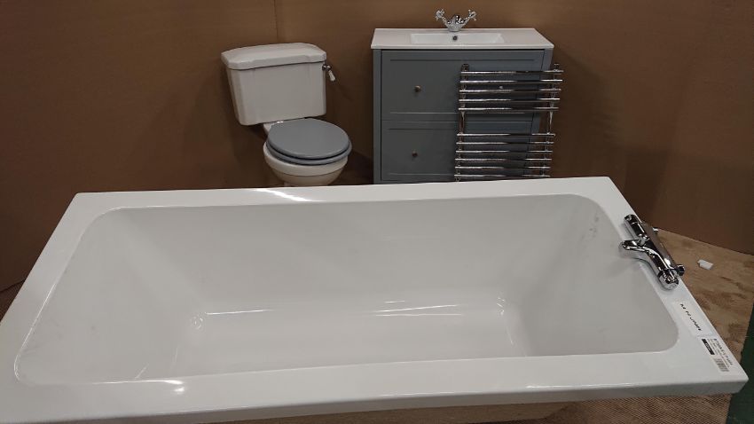 *Bathroom Pack Consisting of; Reva 1700 x700 Bath, Deva Thermostatic Bath Shower Mixer, Round Momart Basin, 32mm Basin Waste Pushtype, Bath Waste, Chrome Towel Rail 450x750, Close Coupled Toilet Grey Seat, 800 Vanity Unit with Furniture.
