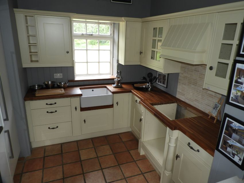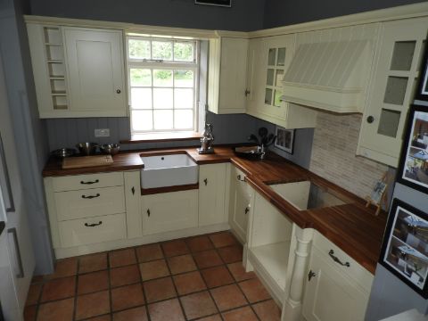 *Sheraton Country Style Cream Kitchen with Solid Hardwood Work Surface, Belfast Style Sink, Wall Units and a Extraction System (250x235)