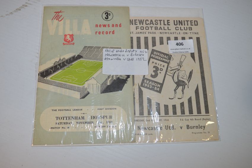 Aston Villa vs Tottenham Hotspur 1952 and Newcastle vs Burnley 1954