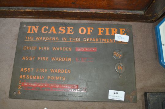 Enamel on Brass Fire Warden Sign