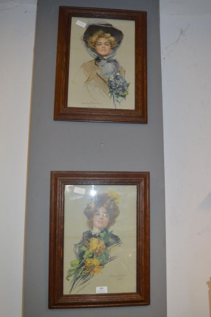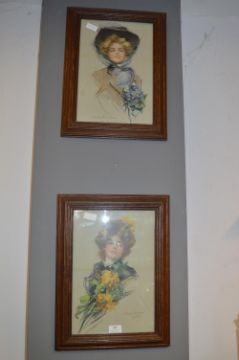 Two Oak Framed Fashion Plates Depicting Young Ladies with Flowers by Philip Boileau 1905