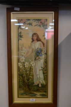 Victorian Framed Print of a Lady Collecting Flowers Entitled Summer