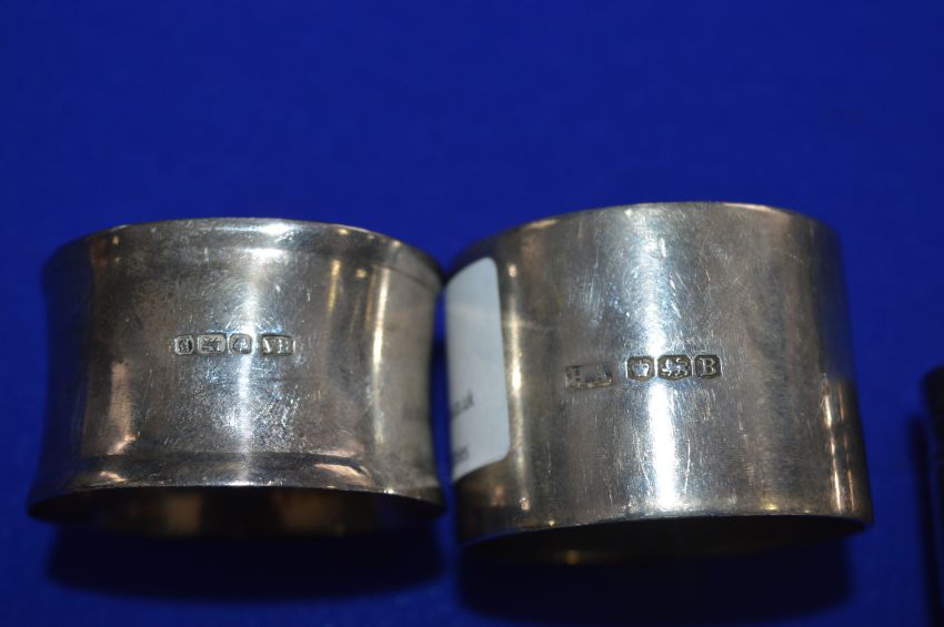 Four Hallmarked Silver Napkin Rings and One Other - (Silver Weight: approx 106g)
