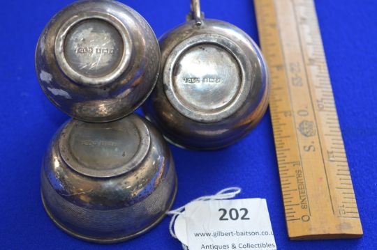 Silver Cruet Set; Pepper Caster, Mustard Pot and a Salt - Hallmarked Birmingham 1950, approx 106g total
