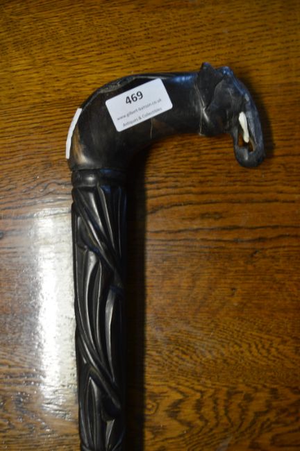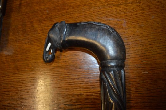 Carved Ebony Walking Stick with an Elephants Head
