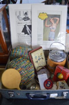 Old Suitcase and Contents of Collectibles; Biscuit Barrels, etc.