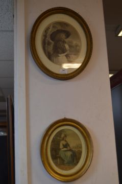 Two Georgian Gilt Framed Oval Prints - Ladies in Pastoral Settings