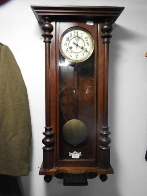 Mahogany Cased Gustav Becker Vienna Wall Clock with Turned Fittings