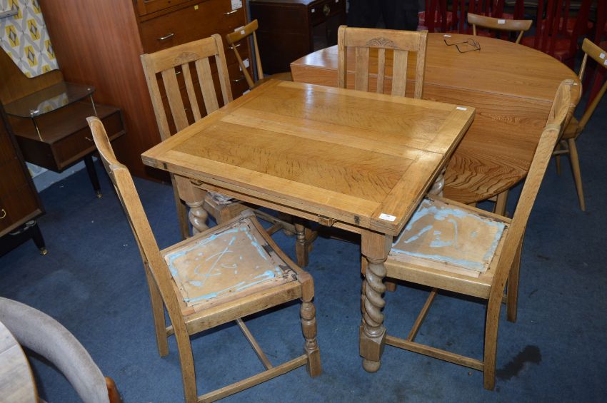 Extending Oak Dining Table with Four Matching Chairs on Barley Twist Legs (Some Faults)