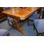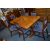 Oak Drawer Leaf Dining Table with Six Blue Upholstered Mahogany Chairs