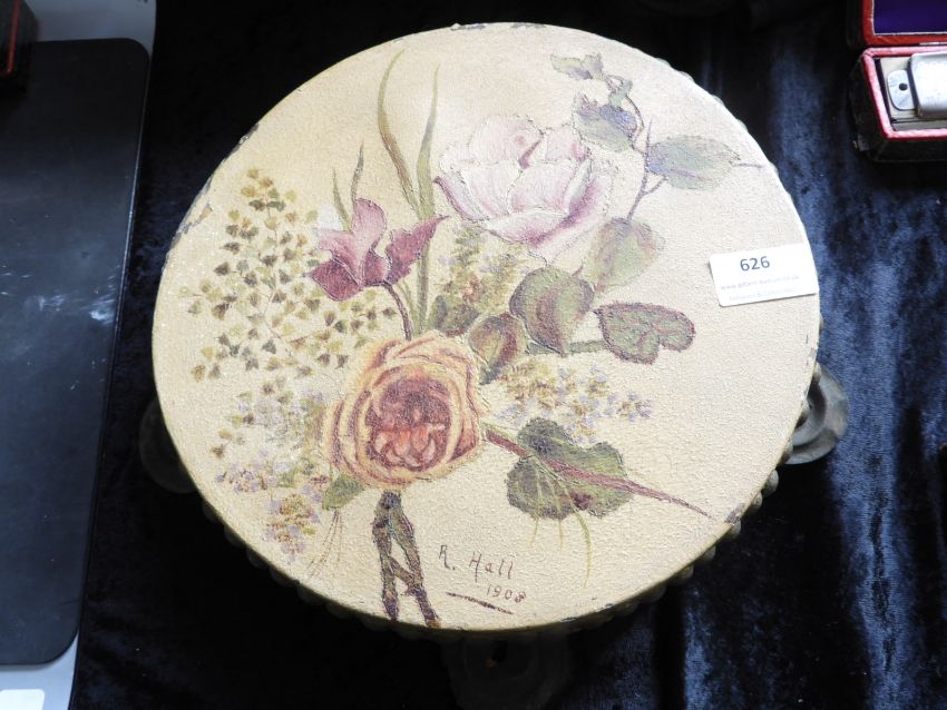 Hand Painted Tambourine singed R. Hall 1908