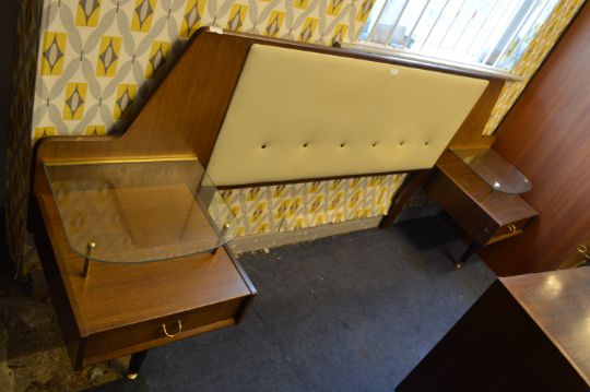 G-Plan Teak Effect Four Height Chest of Drawers and Bedhead