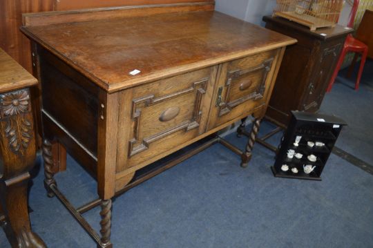1930's Oak Sideboard Jacobean Panels & Barley Twist Legs