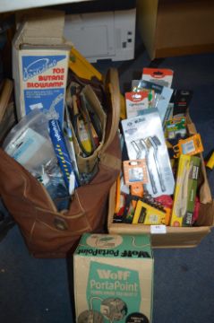 Box and a Bag of Assorted Tools Including Scrapers, Spanners, etc.