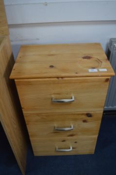 Pine Three Drawer Bedside Cabinet