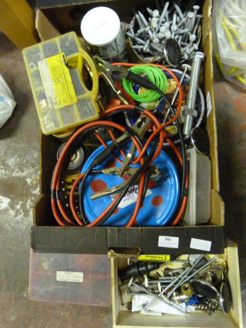 Miscellaneous Box Including Jump Leads, Screws and Accessories