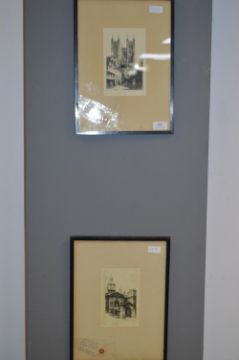 Pair of Etchings by Edward J Cherry Circa 1919 - Lincoln Cathedral & Exchequer Gate