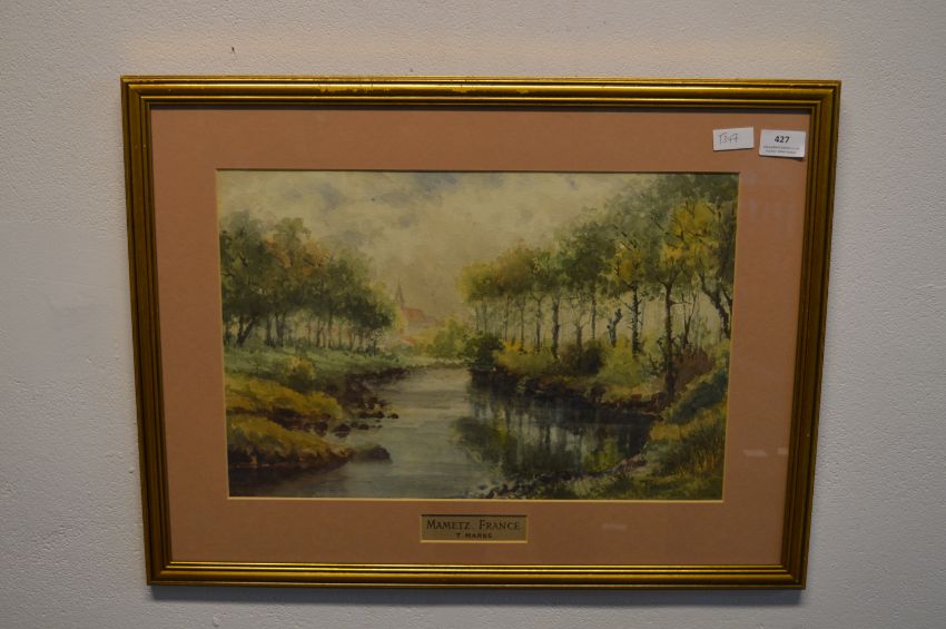 Framed Watercolour of Mametz in France by T Marks