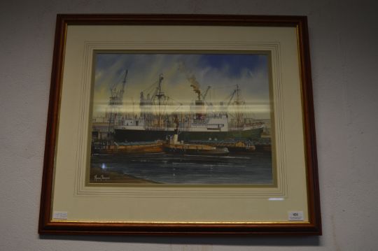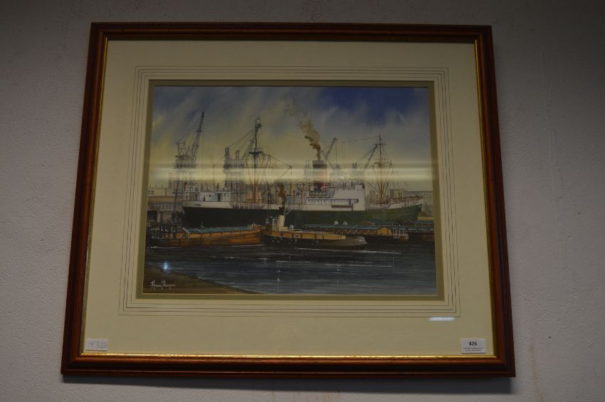 Framed Watercolour of Hull Docks by Adrian Thompson