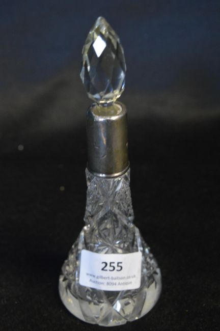 Cut Glass Crystal Scent Bottle with Hallmarked Silver Collar