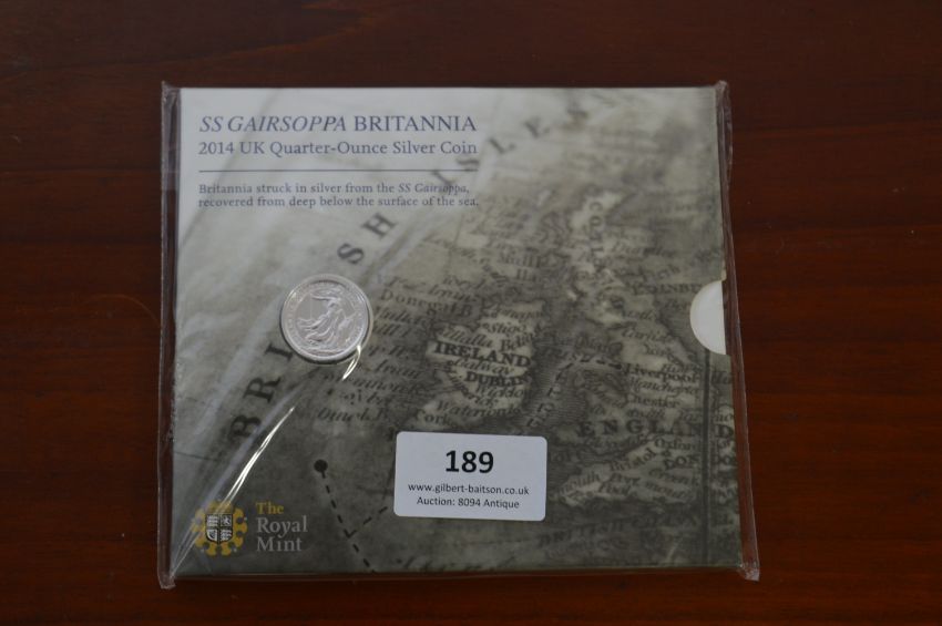 2014 Royal Mint UK Quarter oz Silver Coin Struck from SS Gairsoppa