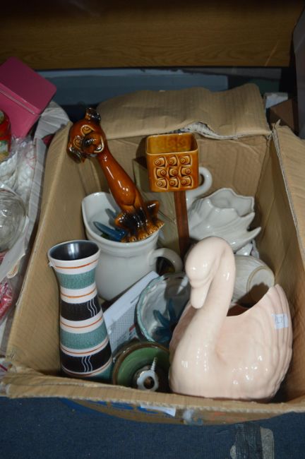 Box of Pottery Swans, etc.