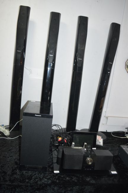 Panasonic Surround Sound Upright Speakers, Boombox, Logitech Ipod Dock, TV Stand, etc.