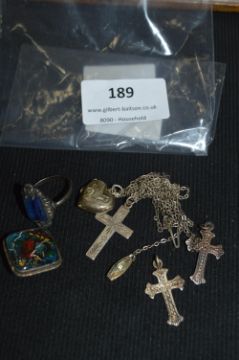 925 Sterling Silver Jewellery Including Crucifix, Pendants, Dress Rings, etc.