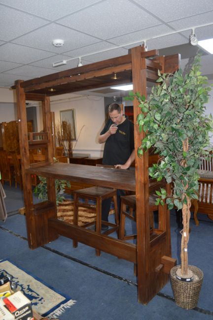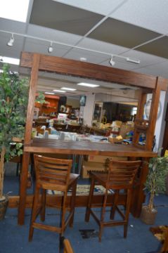 Indonesian Hardwood Bar Unit with Integrated Lighting (Length 2m, Hight 2.15m, Depth 60cm) plus Two Stools