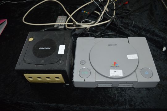 Sony Playstation and a Nintendo Gamecube