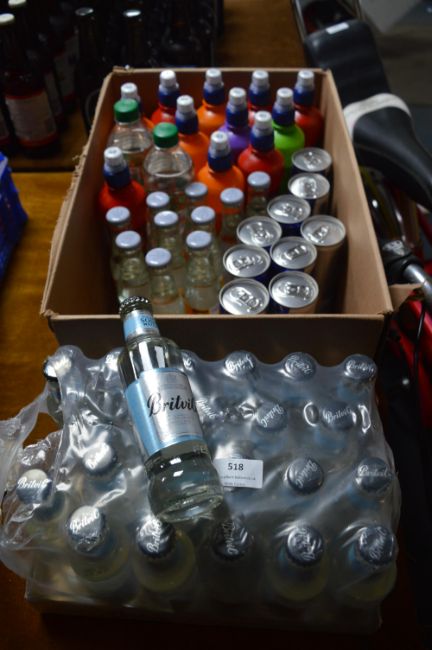 Three Containers of Assorted Soft Drinks; Tonic Water, Sda, Red Bull, etc.