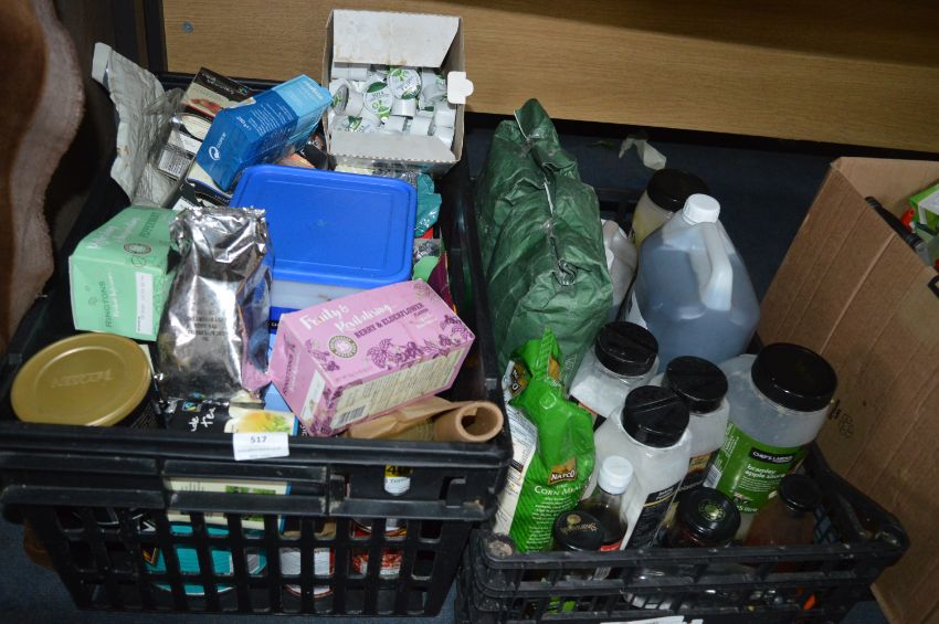 Two Crates of Catering Foodstuffs; Tea, Coffee, Condiments, etc.