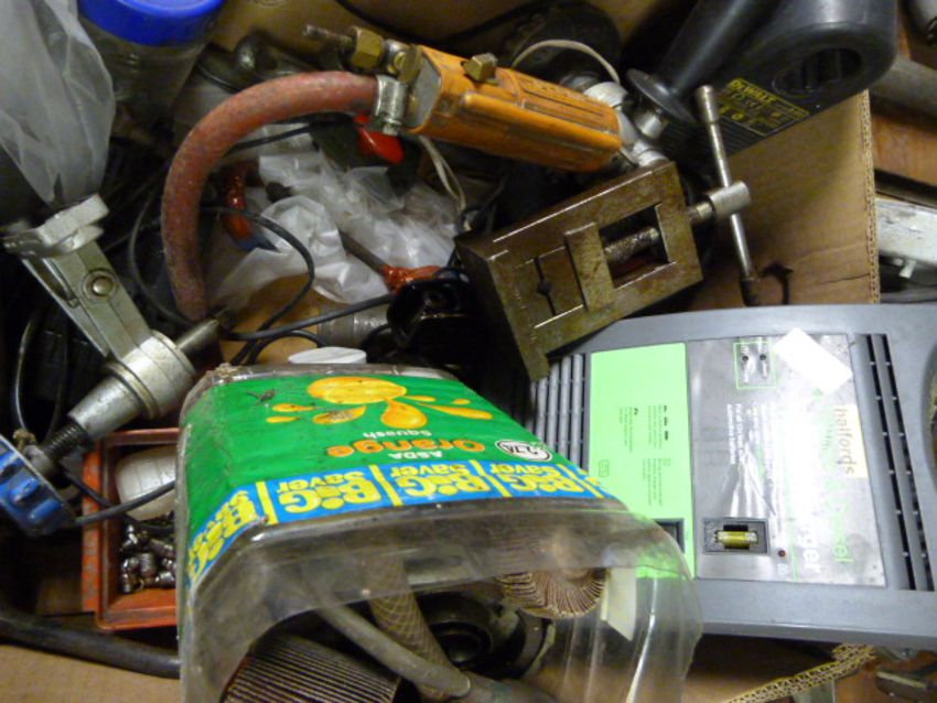 Box Containing Battery Charger, Air Tools, Assorted Fittings, etc.