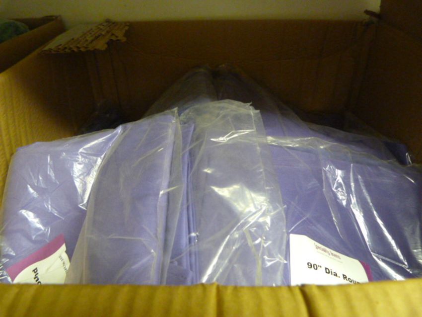 *31 Purple Polycotton 90" Round Tablecloths and 480 Ivory Polycotton Napkins
