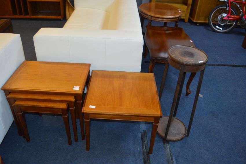 Light Oak Nest of Tables and Matching Side Table by Legate, plus a mahogany Plant Stand