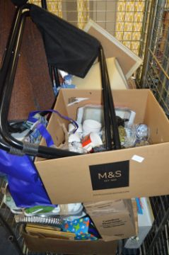 Cage of Household Goods; Pottery, Glassware, Lamp Shades, Stools, etc.